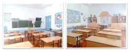 Кабинеты начальной школы оснащены учебной мебелью, специализированными приспособлениями, цифровыми и компьютерными средствами обучения, рабочими и презентационными столиками. К специальным учебным средствам относятся картинки, таблицы, стенды, экранно-звуковые пособия.